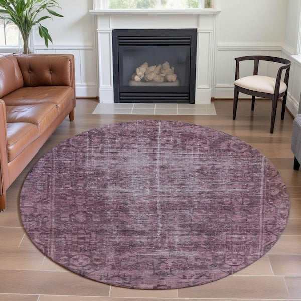 Mayfield Premium Machine Washable Abstract AMF1228 Merlot 8 ft. x 8 ft. Round Rug