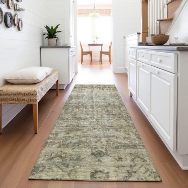 Mayfield Premium Machine Washable Abstract AMF1228 Olive 2 ft. 3 in. x 7 ft. 6 in. Runner Rug
