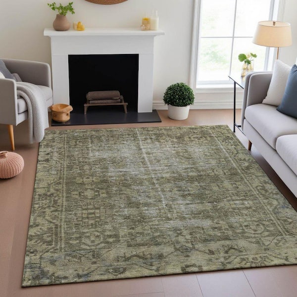 Mayfield Premium Machine Washable Abstract AMF1228 Olive 3 ft. x 4 ft. Area Rug