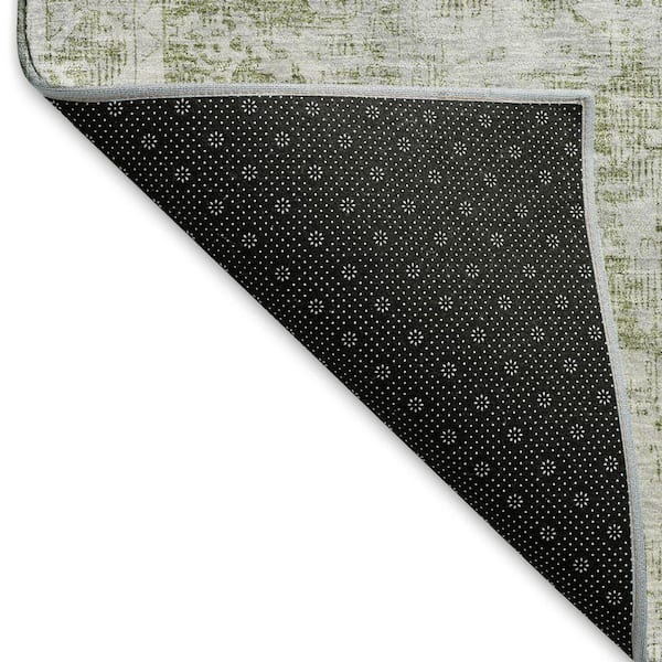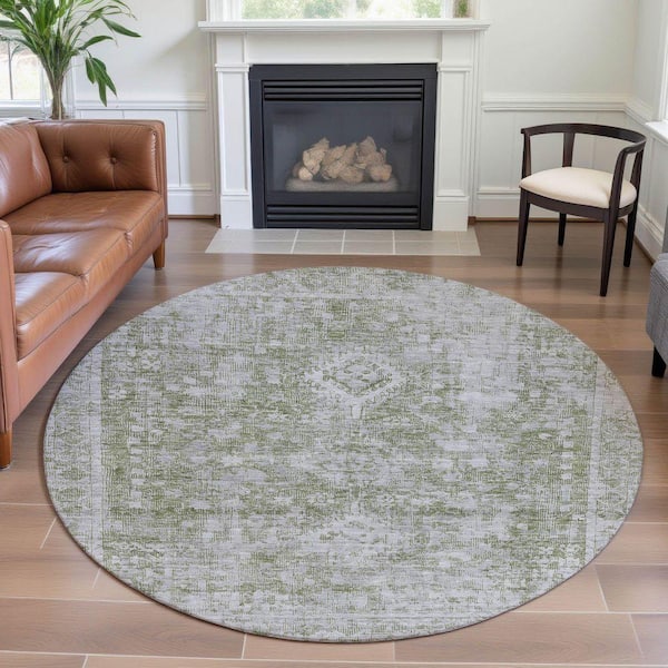 Mayfield Premium Machine Washable Abstract AMF1229 Aloe 8 ft. x 8 ft. Round Rug