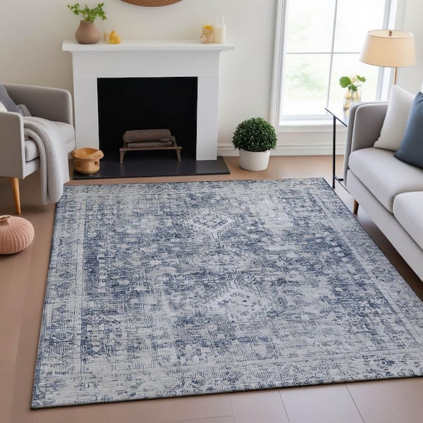 Mayfield Premium Machine Washable Abstract AMF1229 Navy 3 ft. x 5 ft. Area Rug