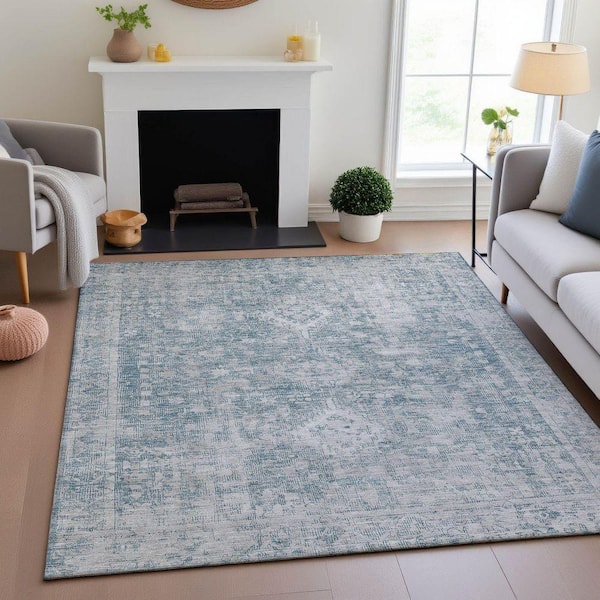 Mayfield Premium Machine Washable Abstract AMF1229 Sky 10 ft. x 14 ft. Area Rug