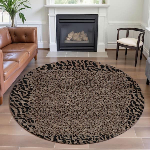 Mayfield Premium Machine Washable Abstract AMF1230 Brown 8 ft. x 8 ft. Round Rug