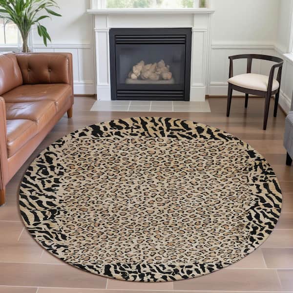 Mayfield Premium Machine Washable Abstract AMF1230 Gold 8 ft. x 8 ft. Round Rug