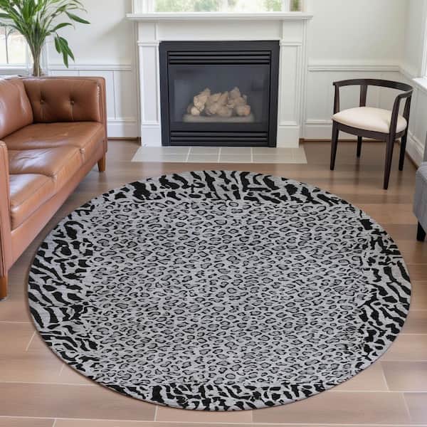 Mayfield Premium Machine Washable Abstract AMF1230 Gray 8 ft. x 8 ft. Round Rug