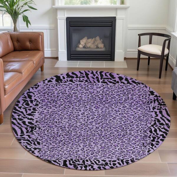 Mayfield Premium Machine Washable Abstract AMF1230 Purple 8 ft. x 8 ft. Round Rug