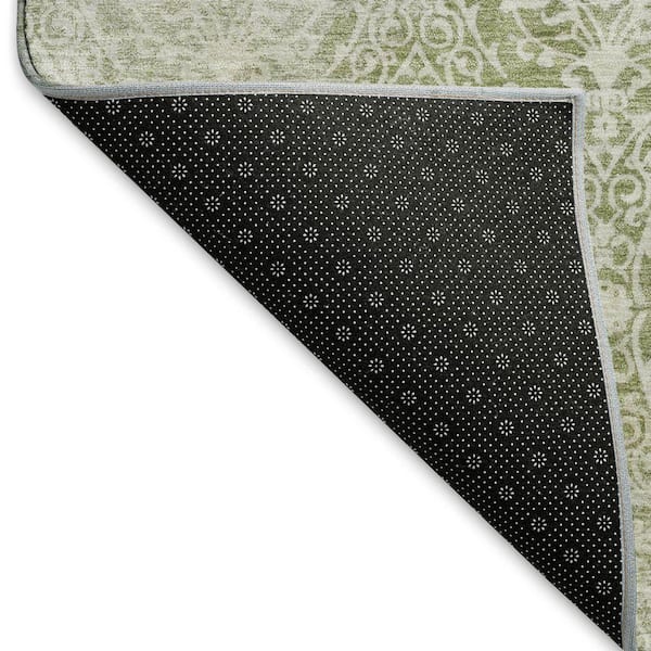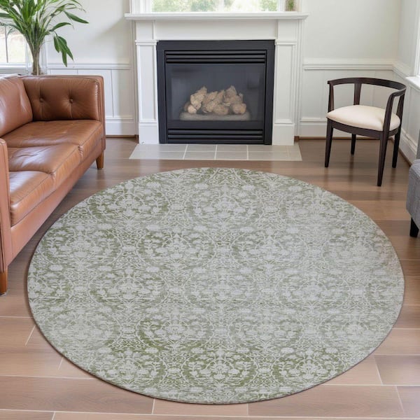 Mayfield Premium Machine Washable Abstract AMF1231 Aloe 8 ft. x 8 ft. Round Rug