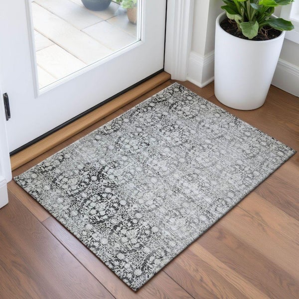 Mayfield Premium Machine Washable Abstract AMF1231 Charcoal 2 ft. x 3 ft. Area Rug
