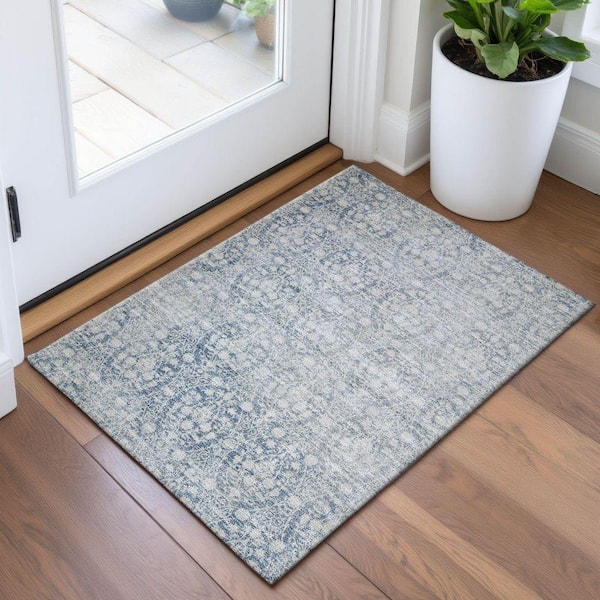 Mayfield Premium Machine Washable Abstract AMF1231 Denim 2 ft. x 3 ft. Area Rug