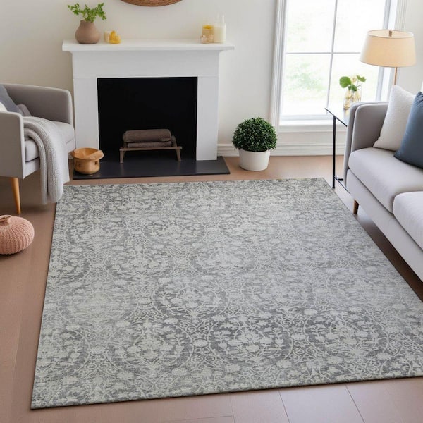 Mayfield Premium Machine Washable Abstract AMF1231 Gray 10 ft. x 14 ft. Area Rug