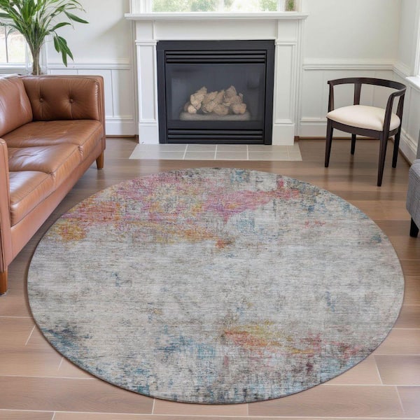 Mayfield Premium Machine Washable Abstract AMF1232 Teal 8 ft. x 8 ft. Round Rug