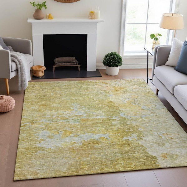 Mayfield Premium Machine Washable Abstract AMF1234 Gold 8 ft. x 10 ft. Area Rug