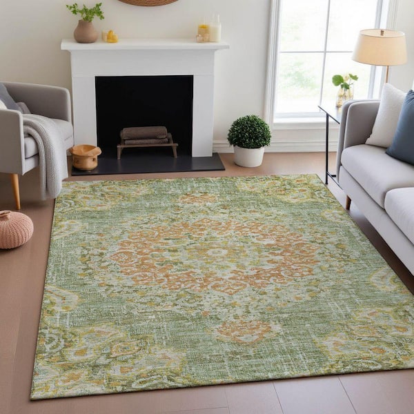 Mayfield Premium Machine Washable Abstract AMF1236 Aloe 5 ft. x 7 ft. 6 in. Area Rug