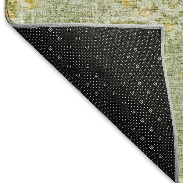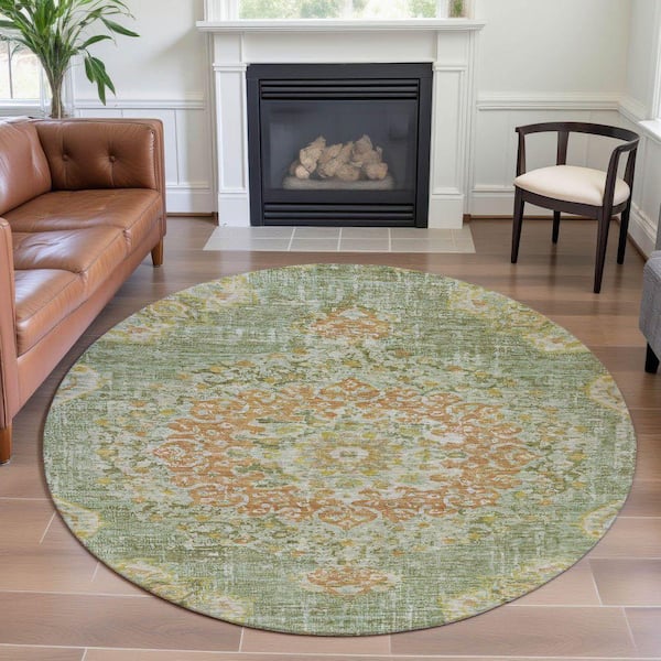 Mayfield Premium Machine Washable Abstract AMF1236 Aloe 8 ft. x 8 ft. Round Rug