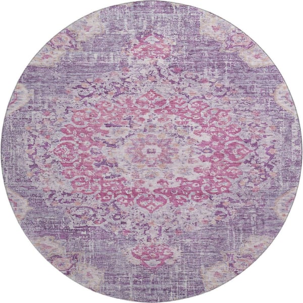 Mayfield Premium Machine Washable Abstract AMF1236 Purple 8 ft. x 8 ft. Round Rug