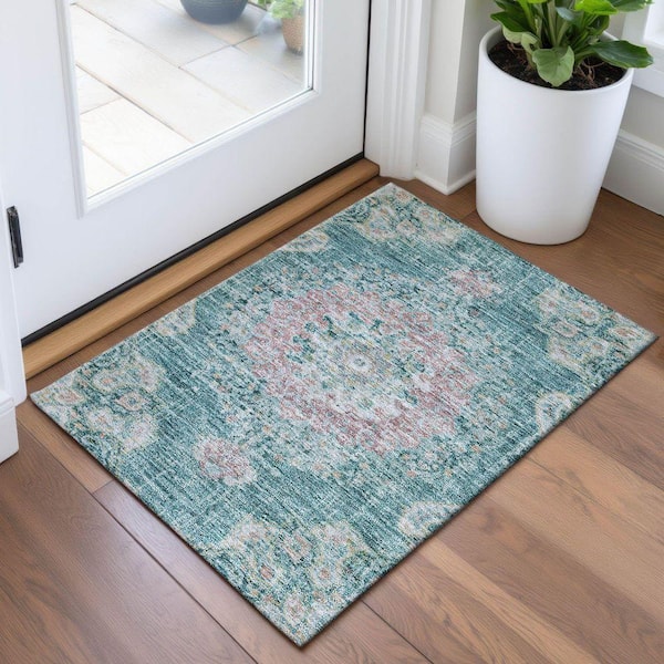 Mayfield Premium Machine Washable Abstract AMF1236 Teal 2 ft. x 3 ft. Area Rug