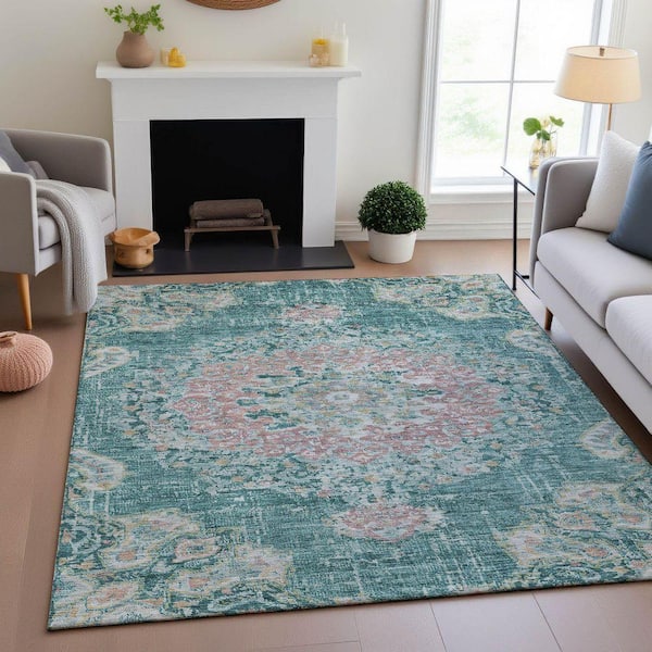 Mayfield Premium Machine Washable Abstract AMF1236 Teal 3 ft. x 4 ft. Area Rug