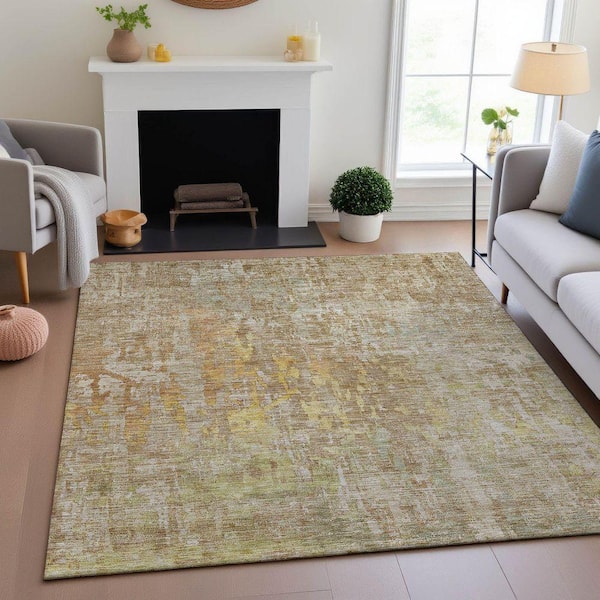 Mayfield Premium Machine Washable Abstract AMF1237 Khaki 9 ft. x 12 ft. Area Rug