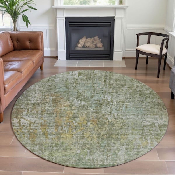 Mayfield Premium Machine Washable Abstract AMF1237 Sage 8 ft. x 8 ft. Round Rug