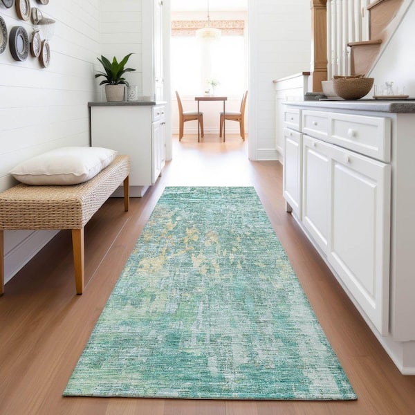 Mayfield Premium Machine Washable Abstract AMF1237 Teal 2 ft. 3 in. x 7 ft. 6 in. Runner Rug