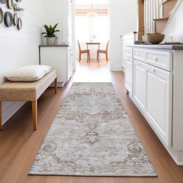 Mayfield Premium Machine Washable Abstract AMF1238 Chocolate 2 ft. 3 in. x 7 ft. 6 in. Runner Rug