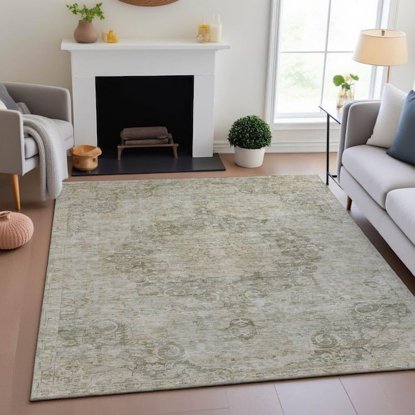 Mayfield Premium Machine Washable Abstract AMF1238 Sage 3 ft. x 5 ft. Area Rug
