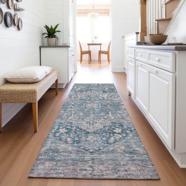 Mayfield Premium Machine Washable Abstract AMF1240 Blue 2 ft. 3 in. x 7 ft. 6 in. Runner Rug