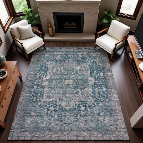 Mayfield Premium Machine Washable Abstract AMF1240 Blue 8 ft. x 10 ft. Area Rug