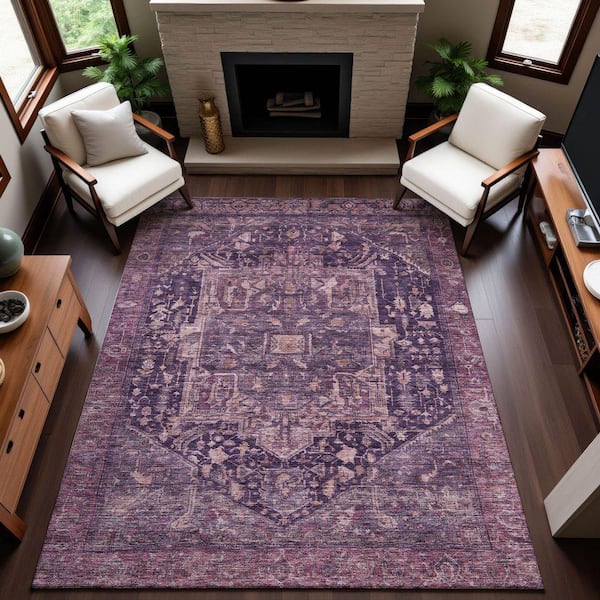 Mayfield Premium Machine Washable Abstract AMF1240 Eggplant 3 ft. x 4 ft. Area Rug