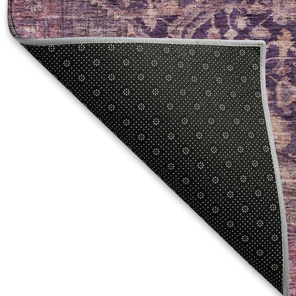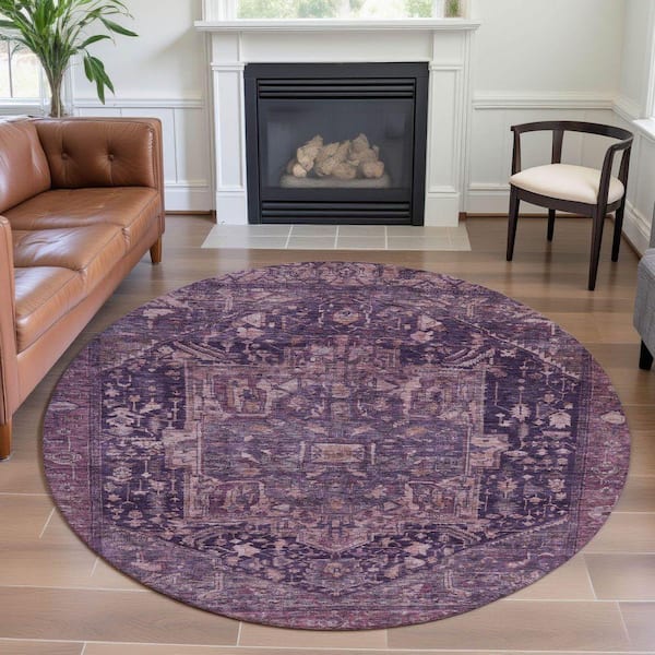 Mayfield Premium Machine Washable Abstract AMF1240 Eggplant 8 ft. x 8 ft. Round Rug