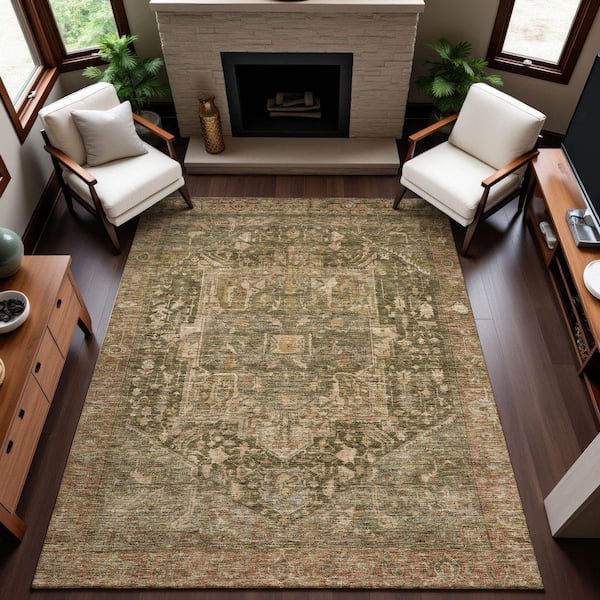 Mayfield Premium Machine Washable Abstract AMF1240 Fern 10 ft. x 14 ft. Area Rug