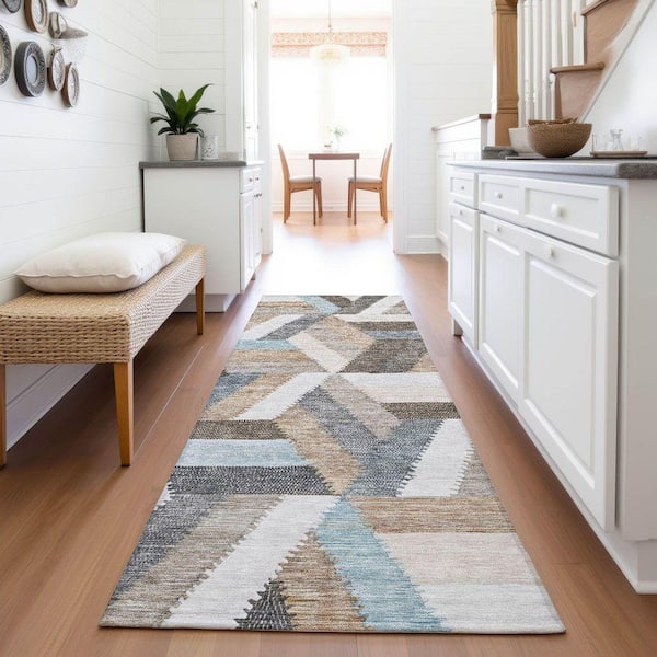 Mayfield Premium Machine Washable Abstract AMF1241 Brown 2 ft. 3 in. x 7 ft. 6 in. Runner Rug