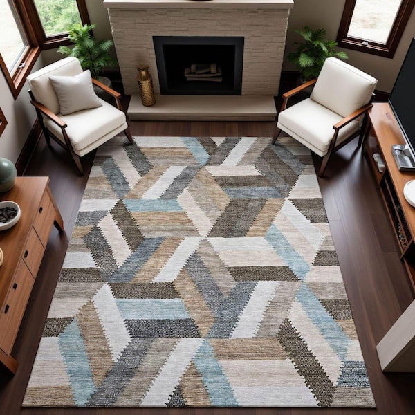 Mayfield Premium Machine Washable Abstract AMF1241 Brown 5 ft. x 7 ft. 6 in. Area Rug