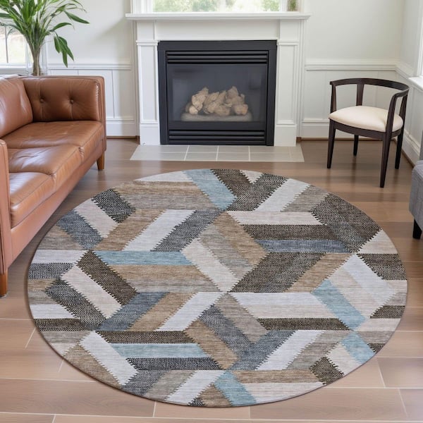 Mayfield Premium Machine Washable Abstract AMF1241 Brown 8 ft. x 8 ft. Round Rug