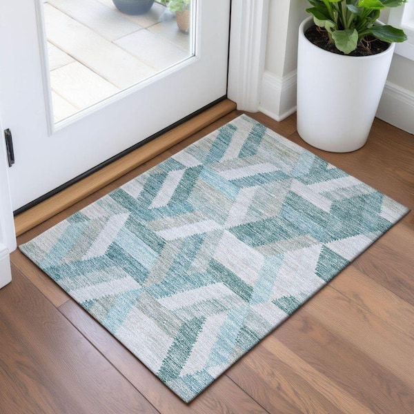 Mayfield Premium Machine Washable Abstract AMF1241 Teal 2 ft. x 3 ft. Area Rug