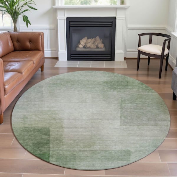 Mayfield Premium Machine Washable Abstract AMF1243 Aloe 8 ft. x 8 ft. Round Rug