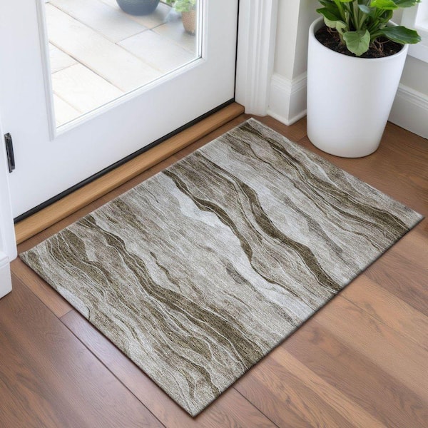 Mayfield Premium Machine Washable Abstract AMF1246 Brown 2 ft. x 3 ft. Area Rug