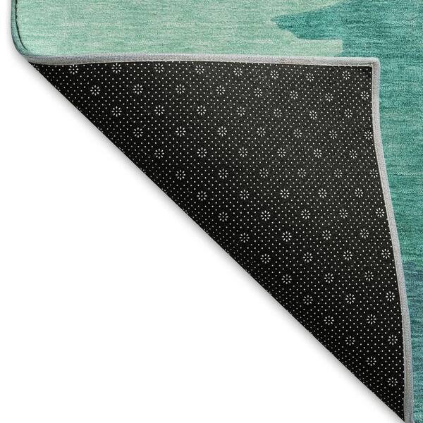 Mayfield Premium Machine Washable Abstract AMF1254 Turquoise 8 ft. x 8 ft. Round Rug