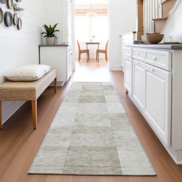 Mayfield Premium Machine Washable Abstract AMF1255 Beige 2 ft. 3 in. x 7 ft. 6 in. Runner Rug