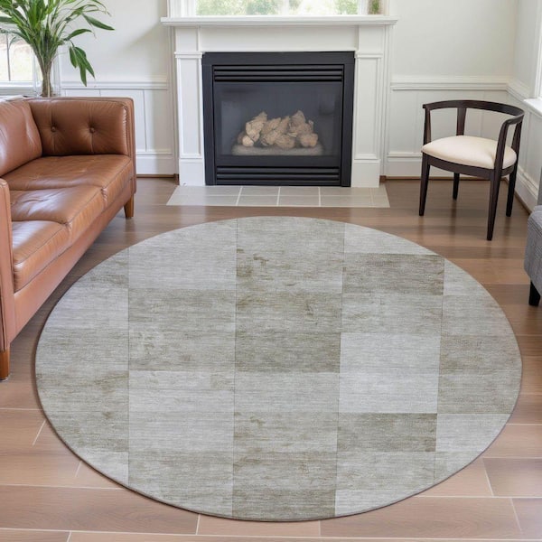 Mayfield Premium Machine Washable Abstract AMF1255 Beige 8 ft. x 8 ft. Round Rug
