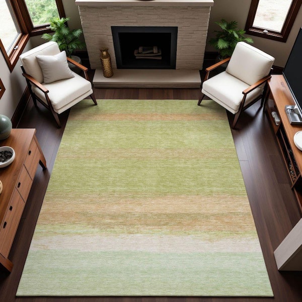 Mayfield Premium Machine Washable Abstract AMF1272 Aloe 3 ft. x 5 ft. Area Rug