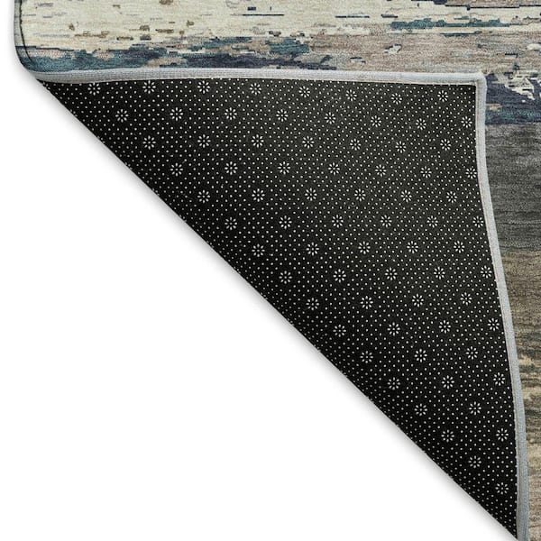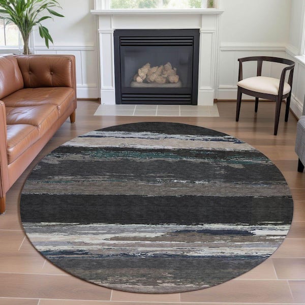 Mayfield Premium Machine Washable Abstract AMF1280 Black 8 ft. x 8 ft. Round Rug