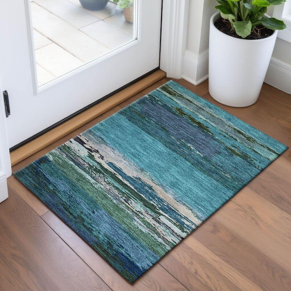 Mayfield Premium Machine Washable Abstract AMF1280 Teal 2 ft. x 3 ft. Area Rug