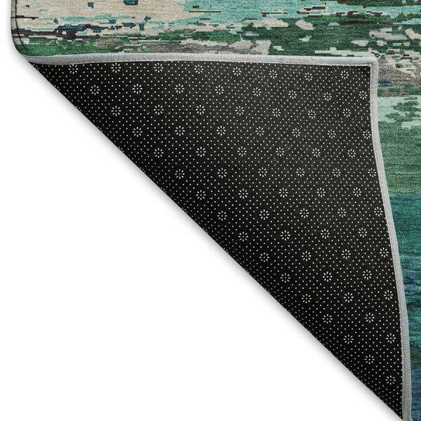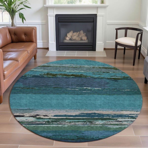 Mayfield Premium Machine Washable Abstract AMF1280 Teal 8 ft. x 8 ft. Round Rug