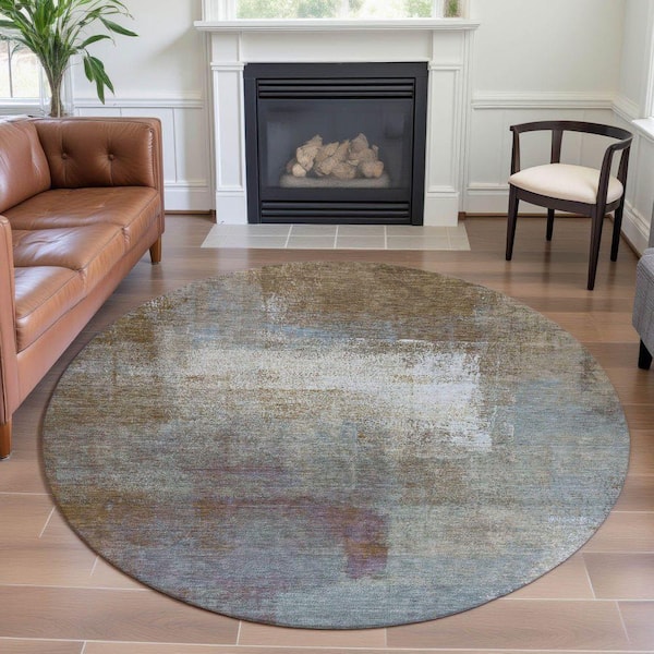 Mayfield Premium Machine Washable Abstract AMF1296 Mocha 8 ft. x 8 ft. Round Rug