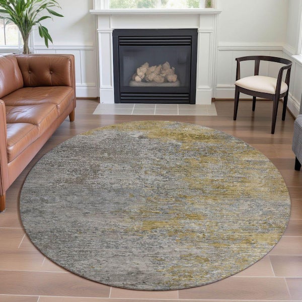 Mayfield Premium Machine Washable Abstract AMF1297 Gray 8 ft. x 8 ft. Round Rug