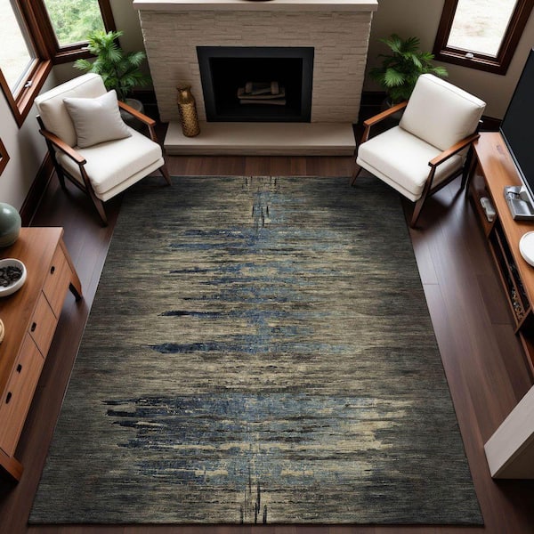 Mayfield Premium Machine Washable Abstract AMF1299 Coffee 9 ft. x 12 ft. Area Rug
