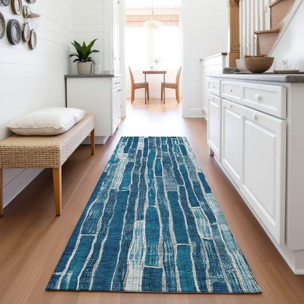 Mayfield Premium Machine Washable Abstract AMF1301 Blue 2 ft. 3 in. x 7 ft. 6 in. Runner Rug