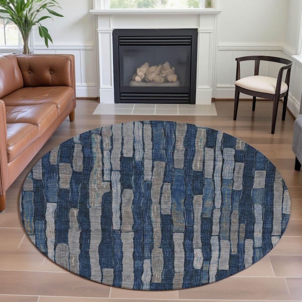 Mayfield Premium Machine Washable Abstract AMF1301 Navy 8 ft. x 8 ft. Round Rug