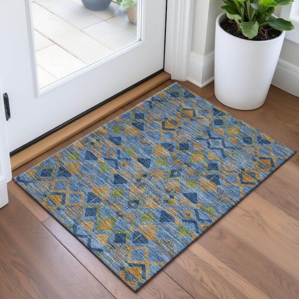 Mayfield Premium Machine Washable Abstract AMF1308 Denim 2 ft. x 3 ft. Area Rug